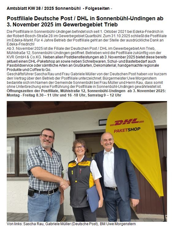 Seit dem 3. November 2025 sind wir stolz darauf, eine vollwertige DHL-Filiale in Undingen zu führen. In unserem Fachmarkt bieten wir Ihnen heute ein vielfältiges Sortiment und herzlichen Service: